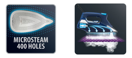 First of all, the iron’s soleplate. By ensuring a perfect glide, it gives a rapid and impeccable result whilst also protecting the fabric. This is notably the case with the Micro Steam soleplate, found on steam generators as well as irons. The concentrated steam at the front of the iron will humidify the laundry, whereas the heat at the back of the plate will dry the linen, vastly reducing the time it takes to iron. As a result, the laundry is more quickly and flawlessly ironed. As for the precision tip, it slides with ease into the smallest of darts and folds.