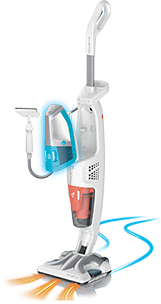 uspješna kombinacija visoko učinkovitog štapnog usisivača, parnog čistača i ručnog parnog čistača! -