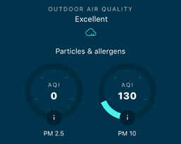 - Čestice i alergeni: ovaj dio prikazuje informacije o lebdećim česticama (PM2.5 i PM10).